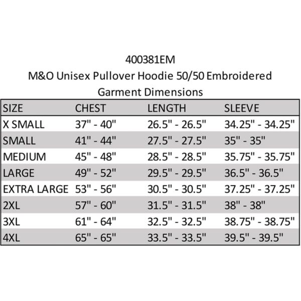 M&O UNISEX PULLOVER HOODIE 50/50 EM